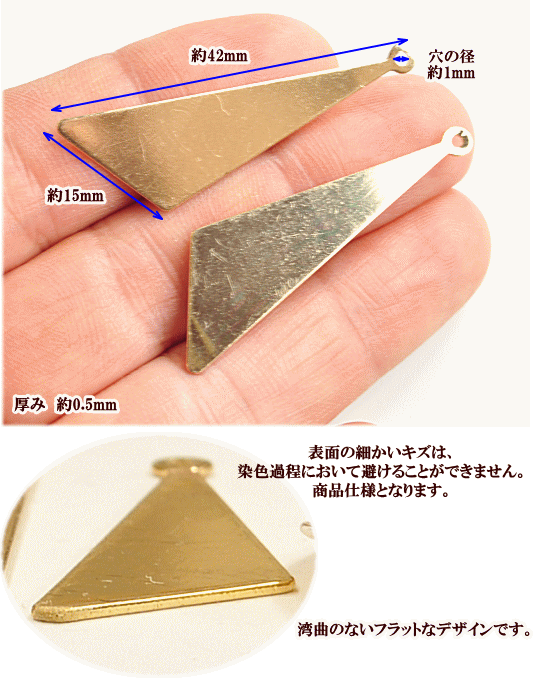 )メタルプレート ロングトライアングル6個キラキラ輝くゴールドカラーがアクセサリー作りにピッタリ♪