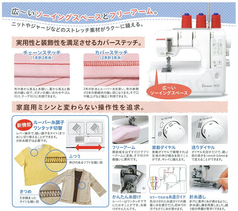 【ミシン】【送料無料】【5年保証】 ジャノメ カバーステッチミシン Torneio-2 795U (トルネィオ ユー) 【ミシン本体】【みしん】【最安値挑戦】