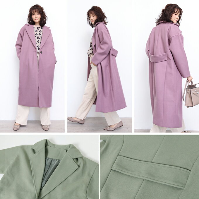 [関連ワード]チェスターコート ロング 冬 レディース メルトン素材 大きいサイズ フリーサイズ 防寒 ブラック 黒 グレー ベージュ モカ ブラウン パープル【BIGシルエットチェスターコート】【冬 新作】【2018年11月新作】DarkAngel/ダークエンジェル