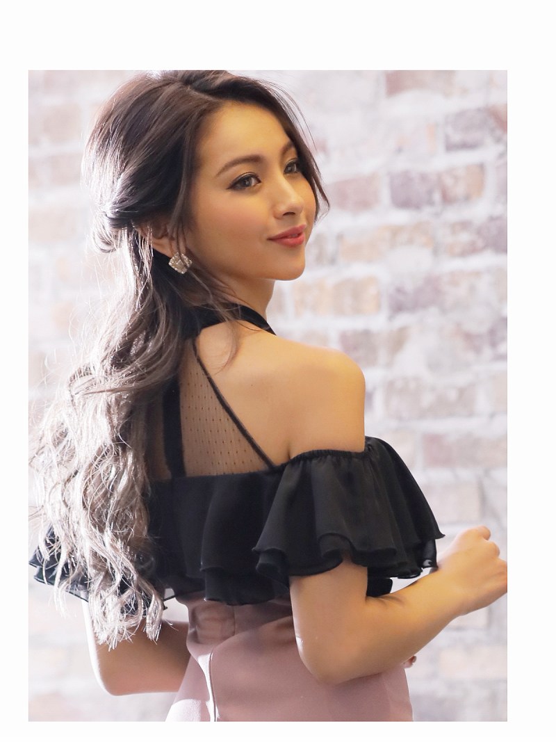 着るだけで女子力アップ出来るオープンショルダードレスは胸元のふんわりフリルデザインがバストアップに効果大のキャバドレス♪
