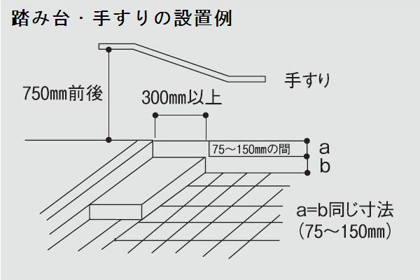 I形手すりはこちら 直径35×全長2000mmはこちら 手すり金具等はこちら踏台に足を引っ掛けないように蹴込み板を付け、 蹴込寸法を5mmにおさえました。